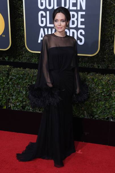 Angelina Jolie - Não vou dizer que não foi triste vê-la sozinha numa passadeira vermelha, mas achei que este look é mesmo à "sou a rainha disto tudo". Quando soube que se ia usar preto, lembrei-me logo daquele ano em que ela usou a perna dela e o vestido foi apenas acessório. Aparece agora num vestido que seria facilmente apontado como o oposto desse e está tão bem que dói.